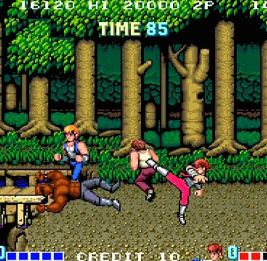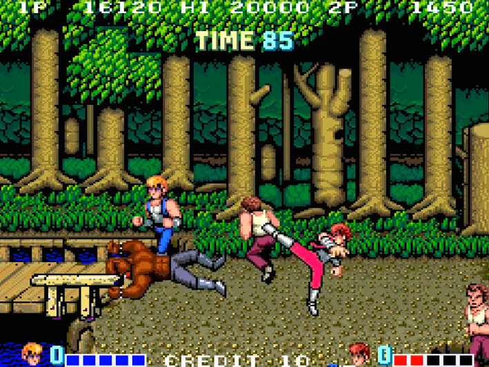In 1987, Double Dragon was released, and became a worldwide phenomenon, truly cementing the belt scrolling action genre as one of the stable fixtures of 80's arcade gaming. As a spiritual successor of the Kunio series, Double Dragon would go on to establish other elements into the beat 'em medium, such as 2-player co-op, progressive stages, cinematic cut sequences that embraced the attitude and feel of action films.