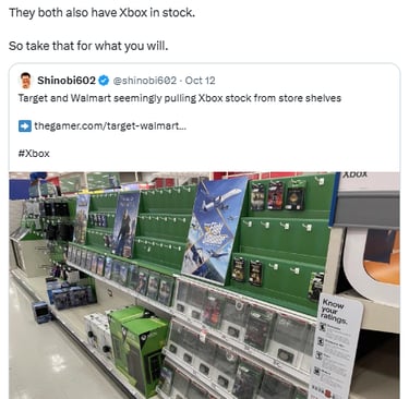 Late Saturday, strong speculation had surfaced that big U.S. retailers Target and Walmart were planning on removing their Xbox supply. This rumor began on an Xbox subreddit where a user CodeE1985 and others stated that their local Target was getting rid of the entire Xbox section, and that all Targets in Kansas City was to follow suit. The growing concern comes after CostCo locations in the U.S. and U.K. removed their Xbox inventory in physical and online stores two weeks ago.