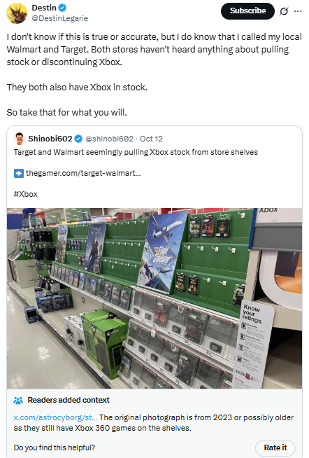I don't know if this is true or accurate, but I do know that I called my local Walmart and Target. Both stores haven't heard anything about pulling stock or discontinuing Xbox. They both also have Xbox in stock. So take that for what you will.
