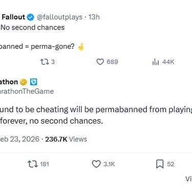 When it comes to cheating, Bungie is implementing a "one strike, you're out" policy. In the official blog's overview on Marathon's official site, they simply state "Anyone found to be cheating will be permabanned from playing Marathon forever, no second chances."