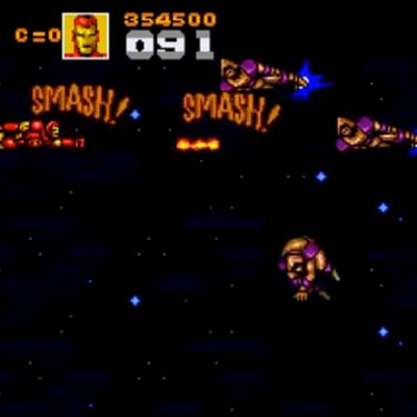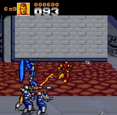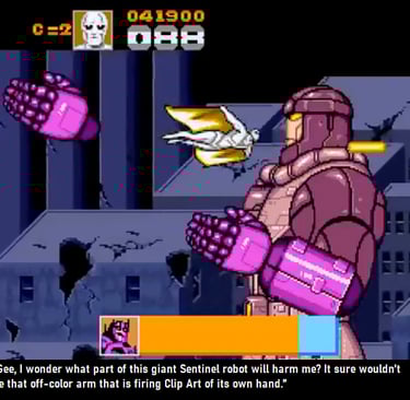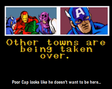 Like games akin to Maximum Carnage, the at does boast a comic book-styled palette, with word balloons that pop up to indicate damage, but the poor frame rate and speed just comes off so lifeless. you could generate more enthusiasm holding action figures in both your hands whacking them against each other. It’s one of the least impressive brawlers I’ve ever seen, and this is the same console that gave us the Final Fight series and Turtles In Time. The sprites of the Avengers look decent enough, except for Vision, who is just a white glob of vaguely defined muscle, and Iron Man’s proton shots look like a power Mega Man felt better off without.