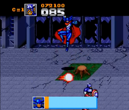 The best course of action to stick to jumping and attacking. it keeps you out of the enemies’ range and when they gang up on you, you’ll just get knocked down a lot. Staying on the ground and using your projectile will help so as long as they don’t close the gap. Firing or throwing Cap’s shield will leave you as vulnerable as a canary in a room full of cats. Hawkeye’s punch is just plain horrible. I sat and tapped the punch button close to 200 times and tried to get a clue as to what he is supposed to be doing, because it’s the most awkward damn punch I’ve seen!