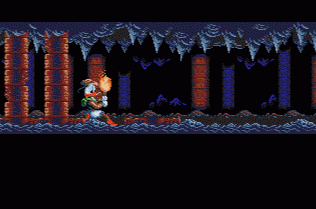 Geared towards gamers probably younger than those who played the 8 bit Disney classics on NES, Quackshot’s difficulty is fair. It won’t overbear you or make everything a cake walk. Duckburg and Mexico are nice preliminary stages before Transylvania ups the ante with ghosts who are tricky to defeat and the game’s first boss battle against Dracula (No, really?). From there, Quackshot does get a little tougher. While foot soldiers remain the same Pete clones, elements are gradually implemented. In Maharadja’s second half, you have to enter doors in a certain order to proceed. Another tomb later on includes memorizing the combination of the SUN, MOON, and STAR.