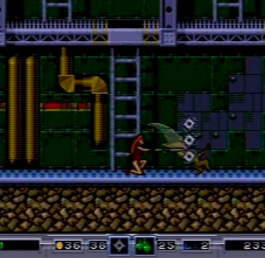 So where Ex-Mutants may not hold up well in the audio and graphics department, the gameplay is actually pretty decent. You jump, attack, and can use an alternate weapon to nail bad guys out of reach from your melee attack. The weapons don’t range in usefulness like Castlevania or Mega Man, in fact, why on earth are there so many bombs and proximity mines in this game?With your standard melee attack, there's a plethora of subweapons that feel like they fell out of other Sega action platform games like Shinobi and Ghouls 'N Ghosts.