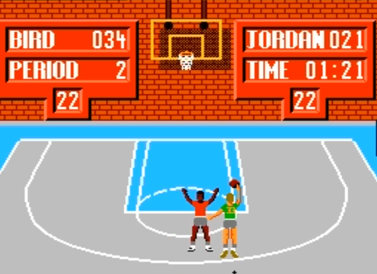 Trying to steal the ball feels stiff, it's even harder to try and block shots. And I'm trying to be as fair as possible with what Jordan vs Bird is going for. But Konami's Double Dribble was released two years before this, and is a substantially better feeling basketball video game. Hell, even Basketball on Atari 2600 offers more nuance. There's little need to apply any strategy or play style, just chuck 3-pointers with Bird, if you're playing him.