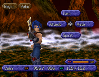 The plot is civilization lives in unison with creatures called Seru who aid humanity with their powers. A dangerous mist shrouds the land, and corrupts the Seru, turning them hostile. When a wall that protects main character Vahn's hometown collapses, his village gets attacked. Yeah, hadn't seen that a good dozen times prior to this...Vahn discovers a Ra-Seru named Meta, which helps awaken the Genesis Tree, which disperses the Mist. Along the way, you meet your other teammates. Gala, a monk, and Noa, a cave girl who was raised by a wolf.