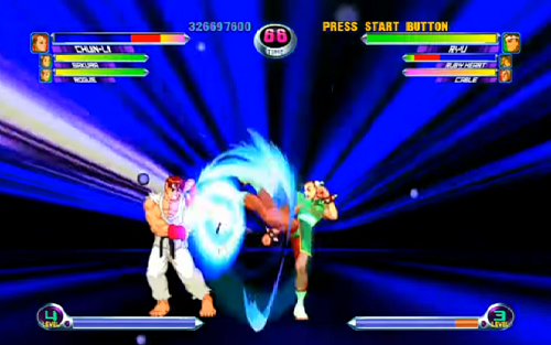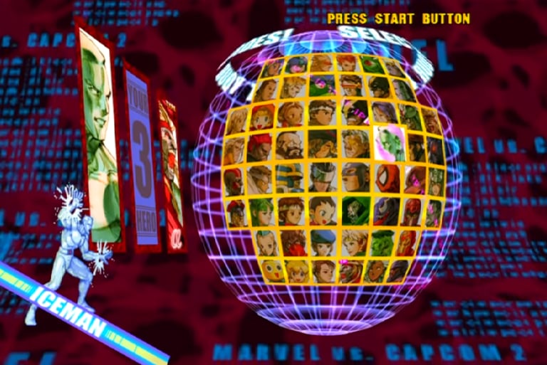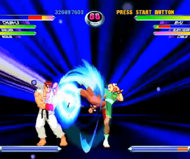 Capcom decided to forego their CP II and III hardware for development of this sequel and opted for Sega’s NAOMI technology instead. This is probably due to the computer animated backgrounds likely to be more taxing on the former’s programming. In arcades, the roster was time-released, so the base selection of fighters ballooned from 24, eventually ballooning to over 50 characters.