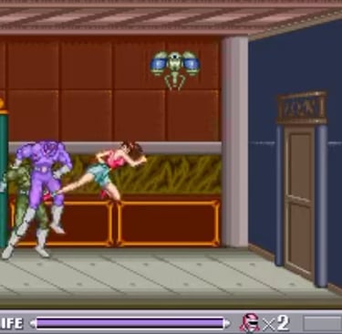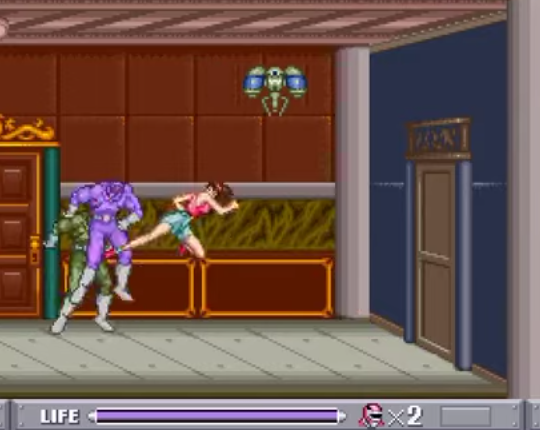 Outside of that, you battle through a quarter of the stage until the monster reveals itself. This leads to the morphing sequence, which is pretty awesomely handled for the 16 bit era, and you beat the ever-living snot out of putties while the theme music plays in the background. Quite on-brand, if I say so. It’s similar to Double Dragon, where you lock into the direction you are leaping. It’s not incredibly frustrating, just a bit annoying. Putties are you primary enemy, and they can get pesky in groups. More accurately, it feels like X-Men: Mutant Apocalypse, but a little less smooth.