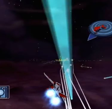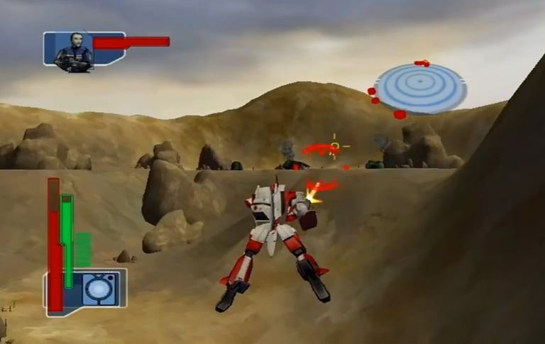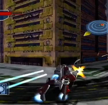 Other anime games I’ve reviewed from this era thus far have had a rather bland color scheme and muddy visuals. Robotech is one of the earlier games I remember that used cel-shading quite effectively. While most closeups look like mech models were outlined in a 0.7 Sharpee permanent marker, its impressive. City and metropolis layouts are richly detailed and a treat to stare at, with civilians walking about in some stages (you can’t step on them, not for a lack of trying, mind you). There isn't a lot of shading, so many of the objects and models do kinda stand out with their flat coloring.