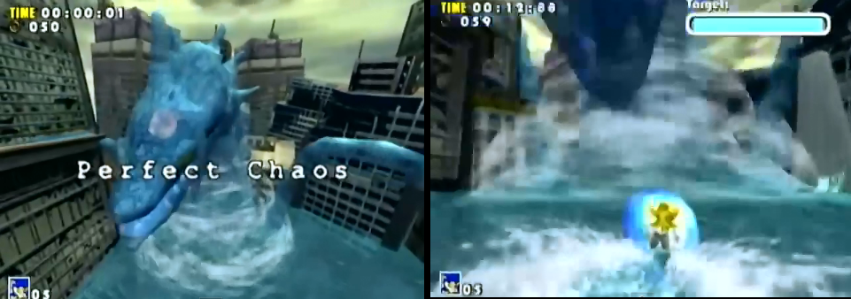 Combined with the rate at which he consumes Ring Power, makes this a power I could probably do without. Now, with that being said, this boss battle with Perfect Chaos is EPIC!! The theme music plays in all of its Crush 40 glory (Did this band ever catch on? They were awesome!!) as Sonic rockets towards the beast, evading his deadly blasts, cycloning up into him and explode in fantastic triumph!!