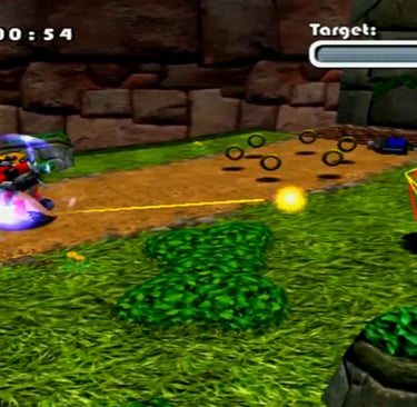 Gamma's campaign Robotnik’s machine is a playable character, and he can be pretty hit or miss. His levels are paced slowly and involve defeating one of his several brethren. His initial walking cycle fairly slow, but when he starts to gain momentum, his legs become treads and his left/right movement goes haywire. There is a lot of stopping and starting with Gamma and the pace can be jarring with the need to stop and attack with his homing missile. You can’t guide the target over foes manually, it does itself. Once you get his hovering upgrade, it becomes a little easier and when you get the hang of his homing laser it can get pretty cool, but Gamma’s play scheme seemed to be a little bit raw. With some fine tuning it may have fared better, like a standard pulse rifle shot or more effective targeting system and maybe charging the attack into a homing beam, perhaps that might make it a little too easy.