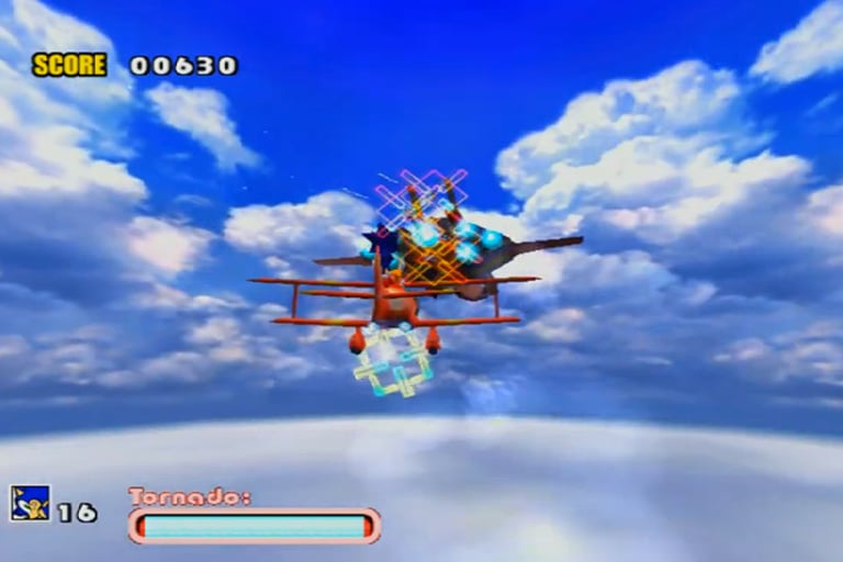 Tail’s campaign Similar layout to Sonic’s, but with an emphasis on racing Sonic to the end, and if he wins, gotta do it over. This a parallel to Tail’s story, feeling he always slows Sonic down. Tails’ pace is slower than Sonic’s and easier to manage because the camera isn’t a detriment this time around. The races get really tough near the end on the Egg Carrier, where the layout can get kind of confusing. Tail’s ability to fly means I can glide over obstacles with ease, but with larger gaps and tricky depth perception, relying too heavily on it caused me to fail often. Getting to pilot Tails’ plane, the Tornado 2, shakes up the gameplay’s pace for a bit, giving to two stages that play similar to the rail shooter Panzer Dragoon!! Now THAT’s boss.